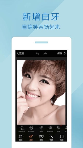 1.全能的美容功能,瘦身,瘦脸,美白,磨皮大眼,祛痘,以及各种各样的眼线和腮红,任你选择,帮你打造精致妆容。