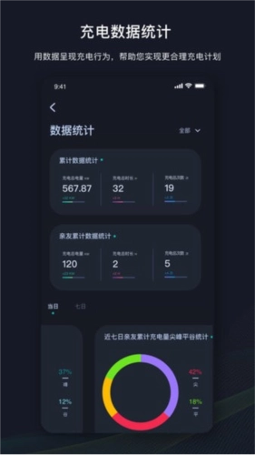 2. 【数据统计】挚达清晰记录每笔充电记录,分析累计及亲友数据、多维度解析充电数据与尖峰平谷充电时段统计,帮助用户实现更合理的充电计划。