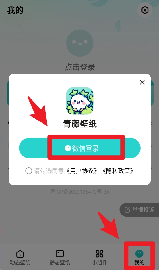 1、进入应用后,点击底部的“我的”进入个人中心页面,接着在弹出的登录窗口里点击微信登录按钮。
