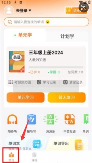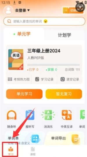 1、同步课本学习,先选择对应年级的教材单元,通过听读和拼写练习记忆单词,系统会自动记录学习进度。