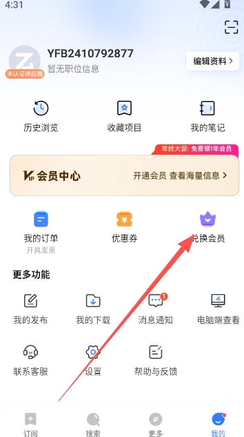 1、在用户个人页面点击兑换会员。