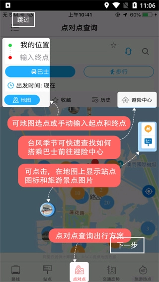 2、“路线”界面可为大家展示天气及巴士路线信息;