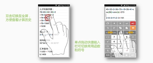 4、双击计算框可进入全屏模式,查看计算历史更方便;