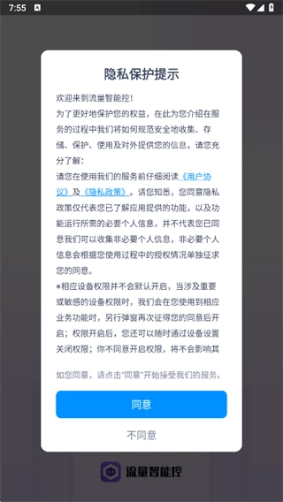 1、安装后打开软件,首次打开时出现的弹窗提示中,直接点击同意用户协议。
