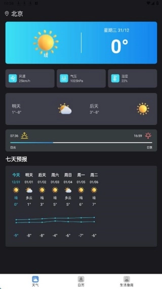 4、在生活指南页面,根据天气了解每一日的生活建议。