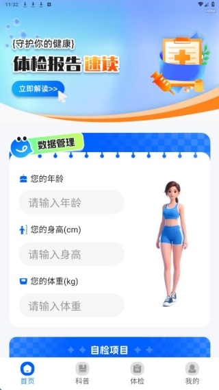 体检结果免费解读是一款提供身体参数记录与管理的健康服务软件,一键上传,直观了解个人体重、血压等变化情况,看看是否符合健康标准,平台还有提交报告分析功能,以专业但直白的话语展示,让你了解个人健康状况。