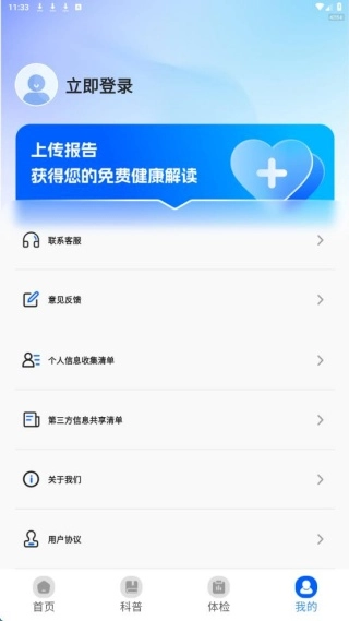 4、在我的页面,带来登录功能,还能上传体检报告。