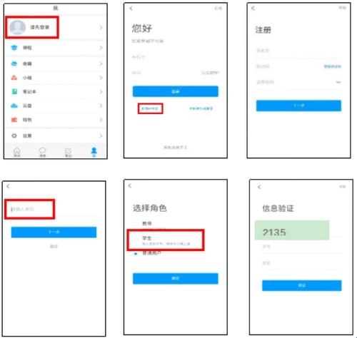 打开应用后,点击页面下方“我的”,点击“请先登录”,点击“新用户注册”,要用手机号注册,再输入单位uc码:2135(点击下方弹出的学校名“温州大学”);选择角色“学生”,输入学号,进行信息验证,验证通过后进入。