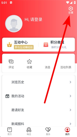 2、在个人页面,点击右上角的设置选项,进入设置页面。
