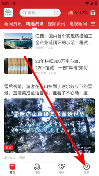 1、在大美庐山网页面,点击底部我的选项,进入个人页面。
