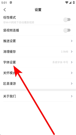 3、在设置页面,点击字体设置选项,进入字体设置页面。