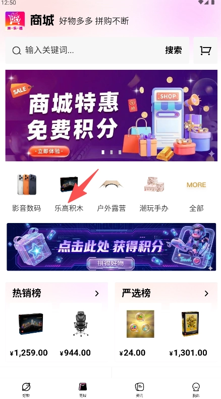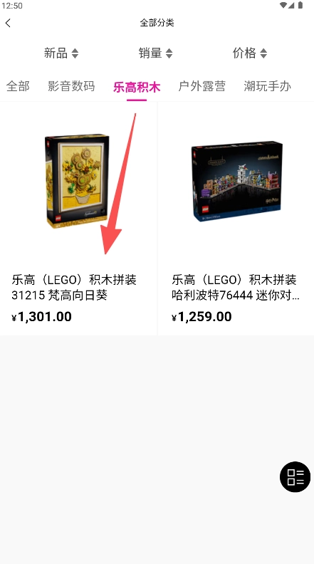 2、在主界面商品分类图标中找到并点击“乐高积木”分类进入商品列表页。