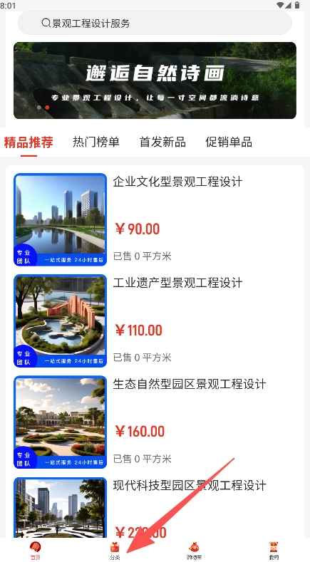 1、提供按“公共景观工程”、“商业水景”等专业分类的设计服务浏览。可通过分类导航逐级查找目标设计服务。