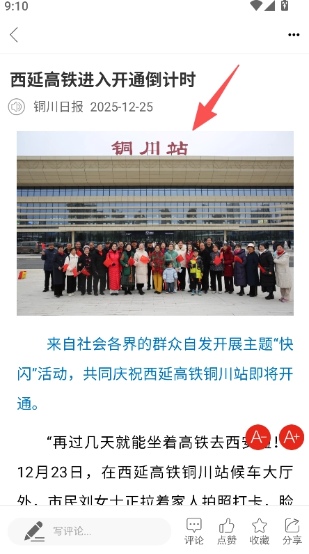 《铜川融媒》是一款本地融媒类软件,设搜索栏及推荐铜川融媒汇等分类,展示本地新闻含乡村振兴高铁等内容,标注发布日期,部分内容带关注标识,点击新闻可看图文详情,配备评论点赞收藏分享功能,底部设首页数字报等板块,覆盖本地资讯获取与互动,操作清晰便于了解本地动态及参与交流。
