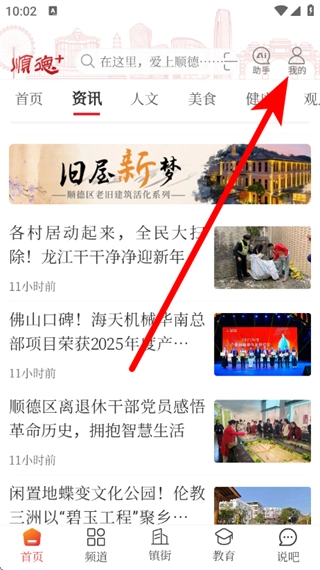 1、打开顺德Plus首页,点击右上角的“我的”按钮,即可进入登录页面。
