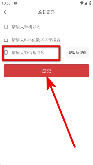 4、在输入框输入验证码,点击提交,完成密码重置。