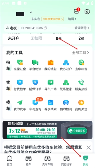 1、在“我的”页面点击【全部工具】,可进入工具汇总页。
