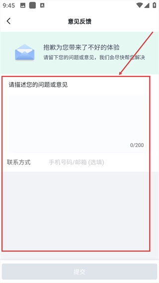 4、填好后,点击【提交】按钮,完成反馈提交。