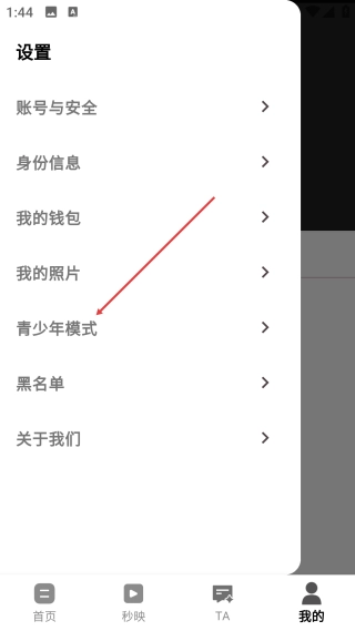 3、进入设置选项页面后,点击【青少年模式】这一选项,即可进入青少年模式的开启界面。