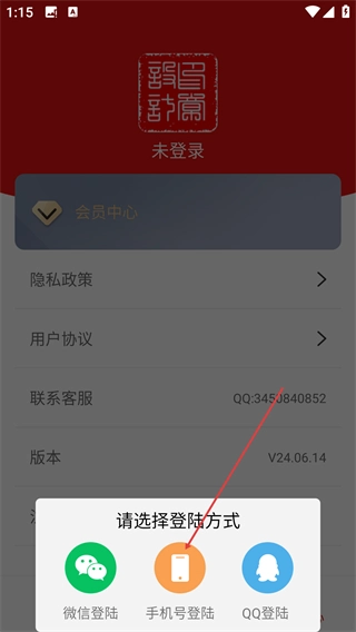 3、在登录方式弹窗里选择【手机号登录】,即可进入手机号登录的输入界面。