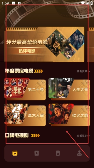 1、进入首页后,找到【年度票房电影等板块】进行查看,选择其中【对应的影片】,即可查看或播放相关内容。