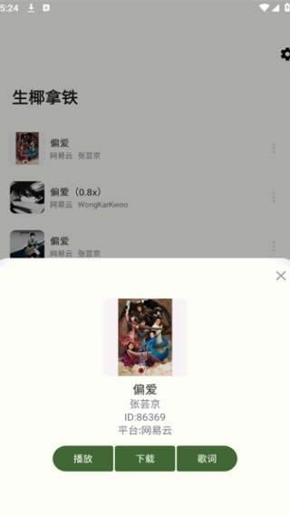 3、支持将喜欢的歌曲、专辑或者歌单保存到本地,就算没有网络也能随时听,满足离线使用的需求。