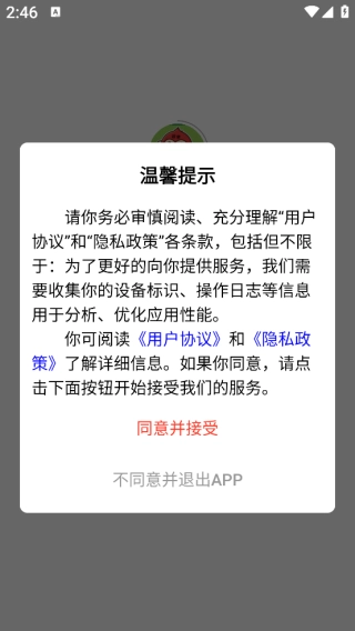 1、最新版本软件,进入时需先同意隐私权限。