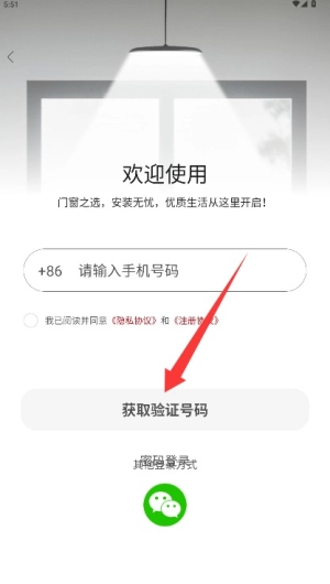 2、在登录页面输入手机号,勾选同意相关条款后,点击获取验证码,输入验证码完成登录。