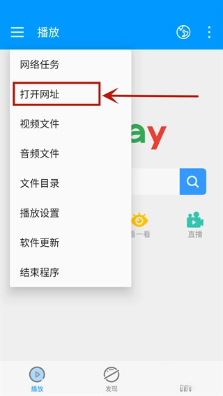 4、点击该图标后,会弹出一个选项卡,从中选择“打开网址”选项,即可快速访问上次搜索影片的网址。