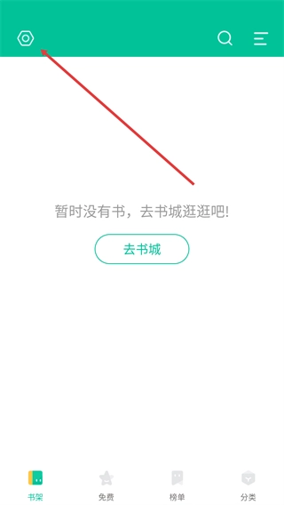 1、打开书架界面后,点击顶部的设置图标,即可进入个人中心页面。