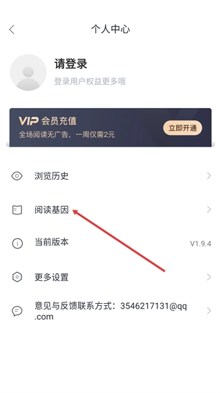 2、进入个人中心页面后,点击“阅读基因”选项,即可进入阅读偏好选择界面。