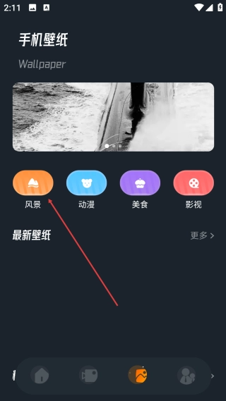 1、打开首页后,点击页面下方的图片图标,即可进入壁纸页面。