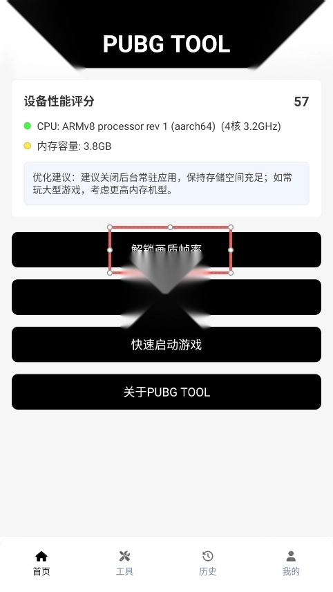 1、提前在手机上安装好和平精英游戏,接着安装本站提供的pubgtool画质助手,之后打开该软件就能查看相关说明;