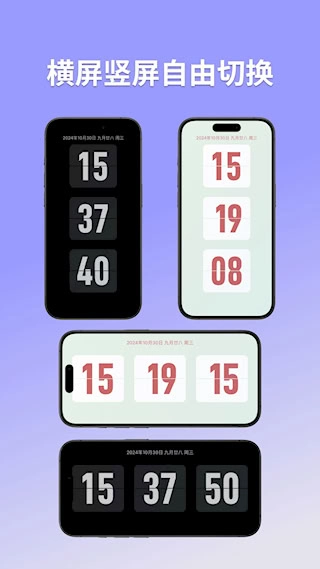 3、提供丰富多样的个性主题,涵盖经典翻页风格、简约表盘设计以及极简数字模式等不同时钟样式与背景,让您可以自由挑选并搭配。