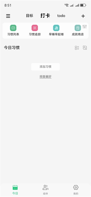 1、完成账户注册与登录,进入应用程序后,你既可以添加新习惯,也能够查看已有的习惯列表。
