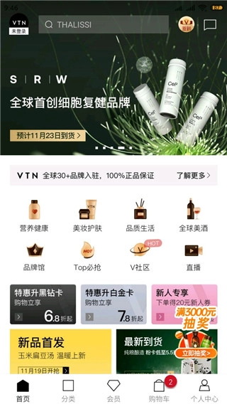 2、会员折扣与福利:会员购物可享85折起优惠,还有专属福利星期三、微醺酒馆等特色频道,平台联动全球1000多家品牌,以深度折扣形式为会员带来回馈