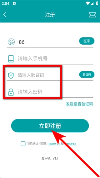 4、填写验证码,设置好密码,勾选相关选项后,点击“立即注册”按钮,即可完成账号注册流程。