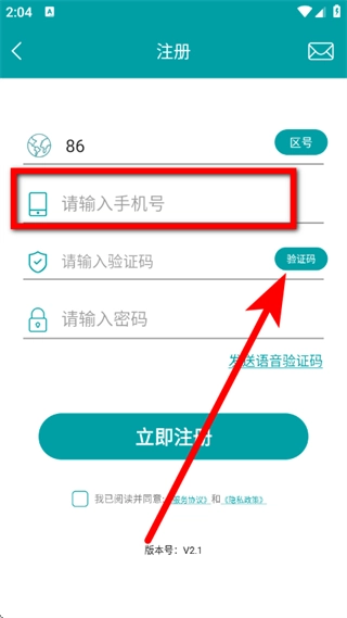 3、在注册页面,输入手机号,点击获取验证码。