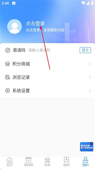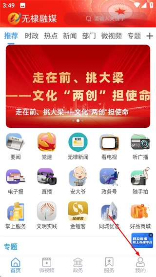 进入无棣融媒后,点击底部的“我的”选项,即可进入个人中心页面。