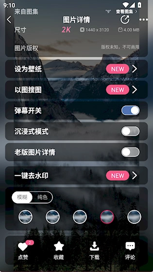 4、图片管理便捷:可对喜欢的图片进行收藏、、设为壁纸或分享至社交平台,操作路径清晰,提升日常使用效率。