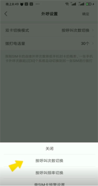 2、进入后,设置双卡切换模式下的呼叫次数频率