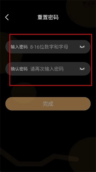 3、进入密码设置页面后,设置8-16位由数字和字母组成的密码,接着再次输入该密码进行确认,最后点击【完成】按钮,就能完成账号注册并直接登录。