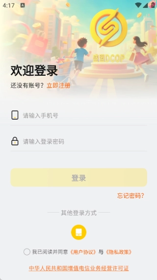 4、于登录页面填写手机号与登录密码,勾选同意协议后,执行登录操作。