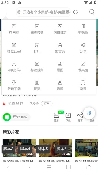 3、在视频会员的播放页面,可点击嗅探功能来查找脚本。