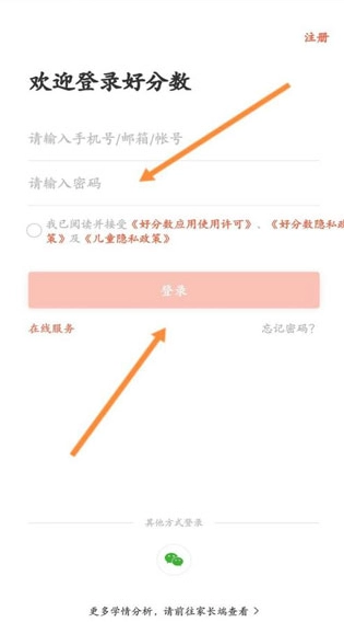 1、好分数的账号是注册时绑定的手机号码、或邮箱号码,或设置的用户名。