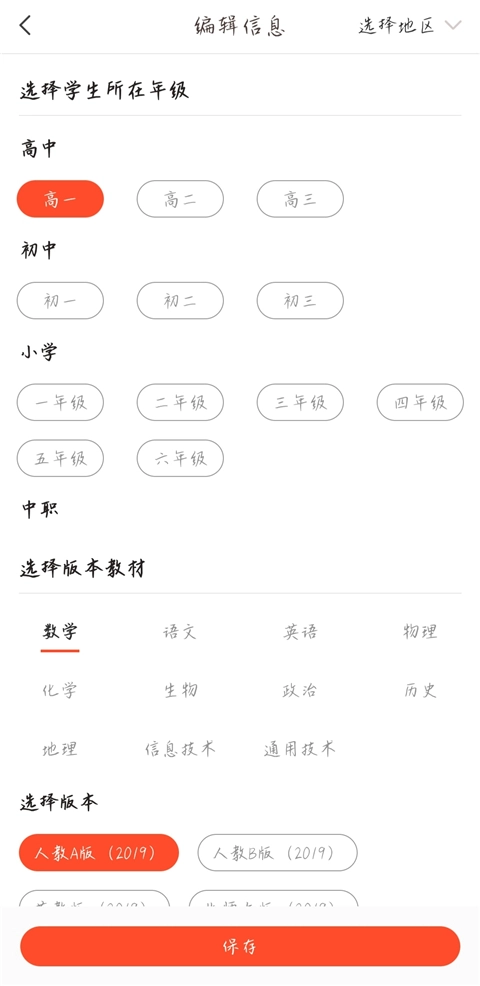 2、用户可在此修改学生的年级、教材版本以及教材。