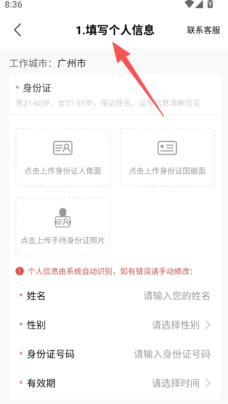 3、拥有证件上传的功能,可上传身份证人像面、国徽面等各类证件,进而完成个人信息的提交步骤。