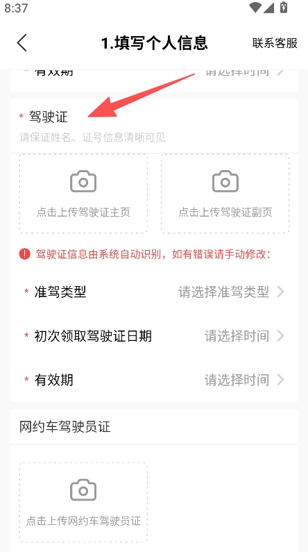 3、上传身份证驾驶证等证件、填写信息完成提交。