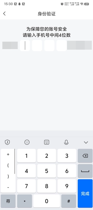 5.输入绑定手机号的中间四位