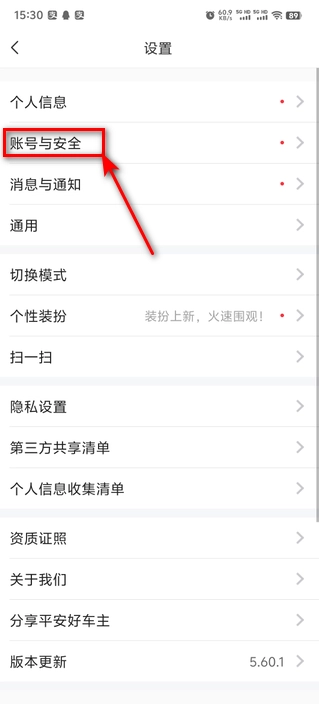 3.找到账号与安全